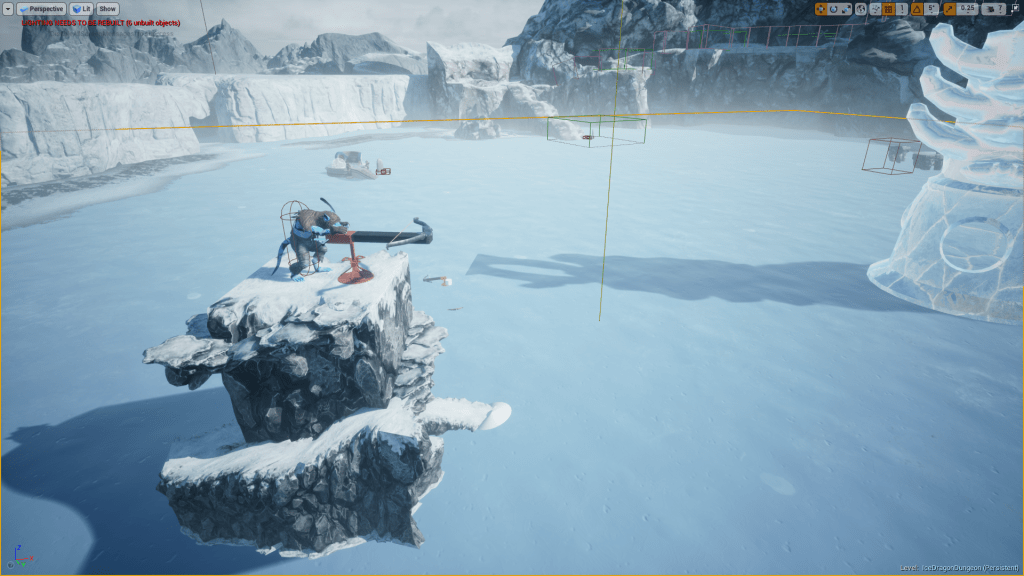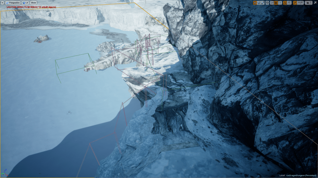 The ice map is meant to be the first in a series of dungeons, which offer something a bit different than the open world ‘overworld’ part of the map. These dungeons are meant to be linear experiences that offer the player a high challenge in terms of density of monsters, offer some puzzles, and ideally introduce a new item/mechanic as a reward for the player progressing.
