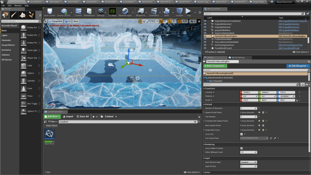 - Fort Finish Point–single point actor indicating where to spawn the sphere that indicates a player has conquered the fort.