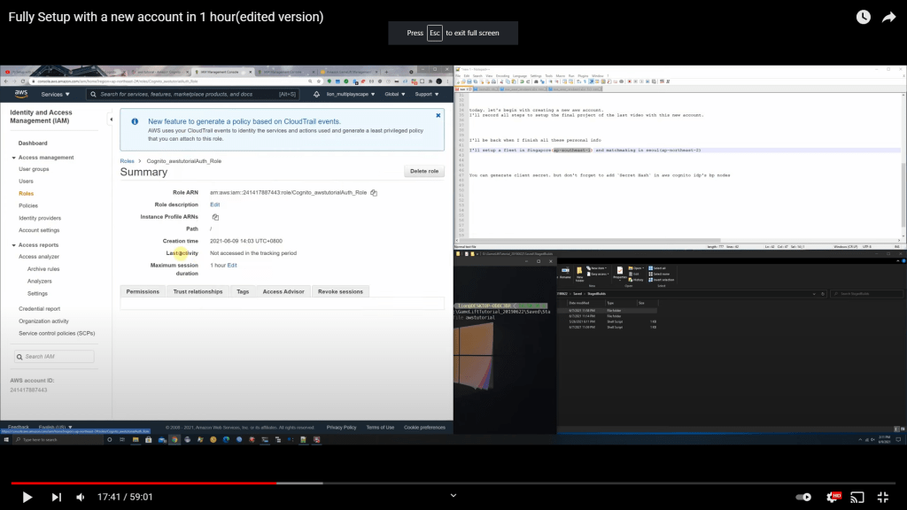 Next it looks like it is referencing a role on AWS IAM of Cognito_awstutorialAuthRole. I do not remember seeing this setup earlier in the video.