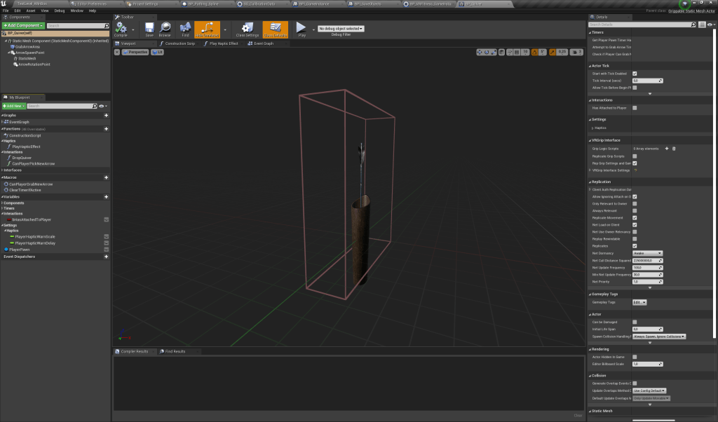 This blueprint core functionality is to attach arrows (BP_Arrow) to it’s string and setting them loose. Keeping track of the state arrow attached/not attached..