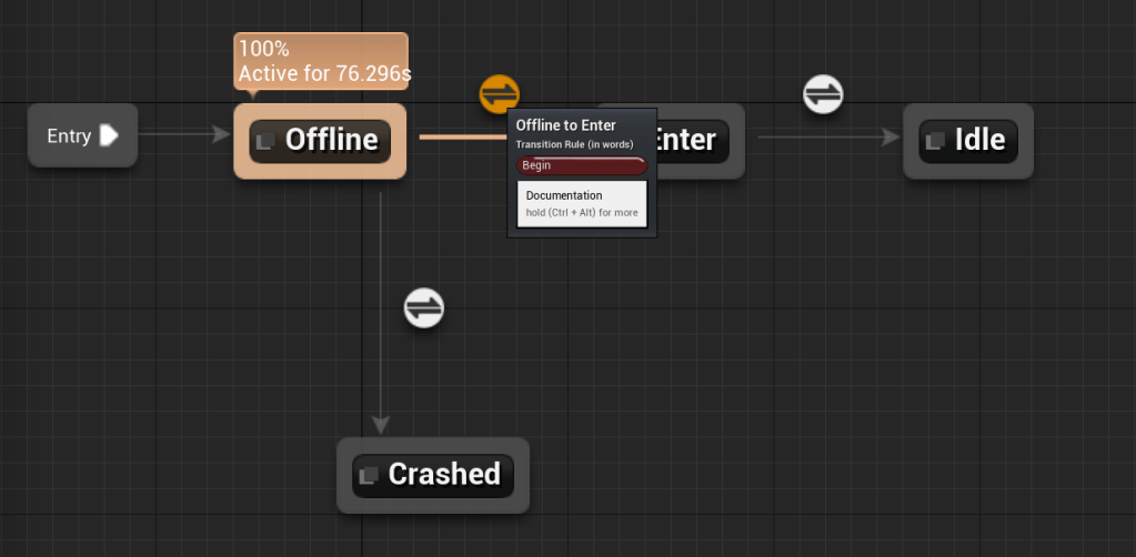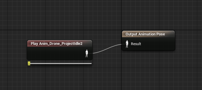 Initially the drone is in an offline state. This sets the drone to use the ‘Anim_Drone_DropIn’ animation but with a play-rate of 0 so it doesn’t move.