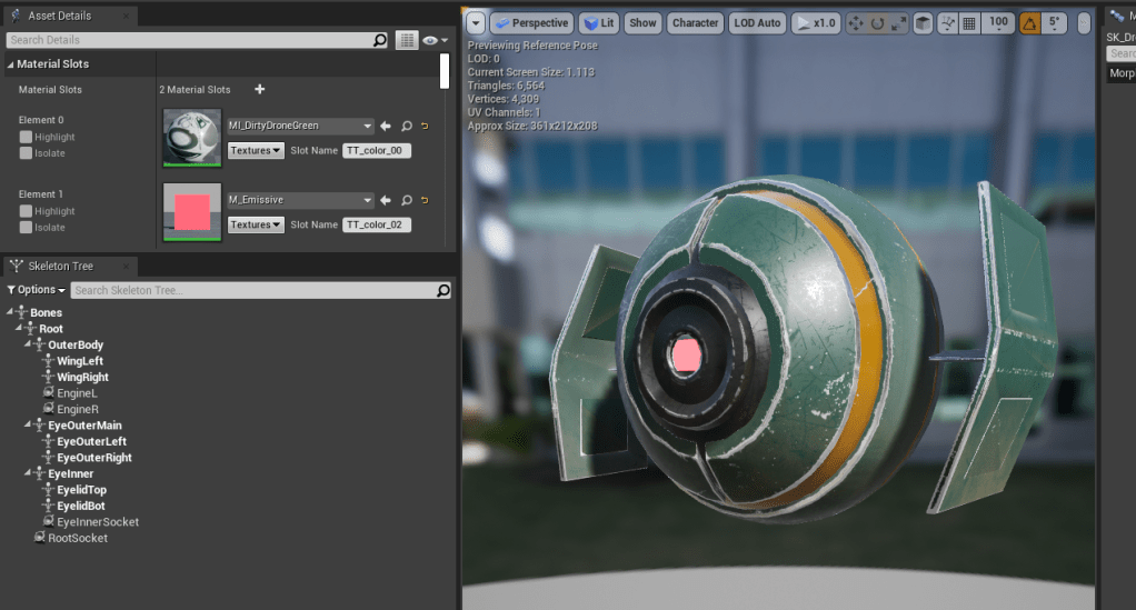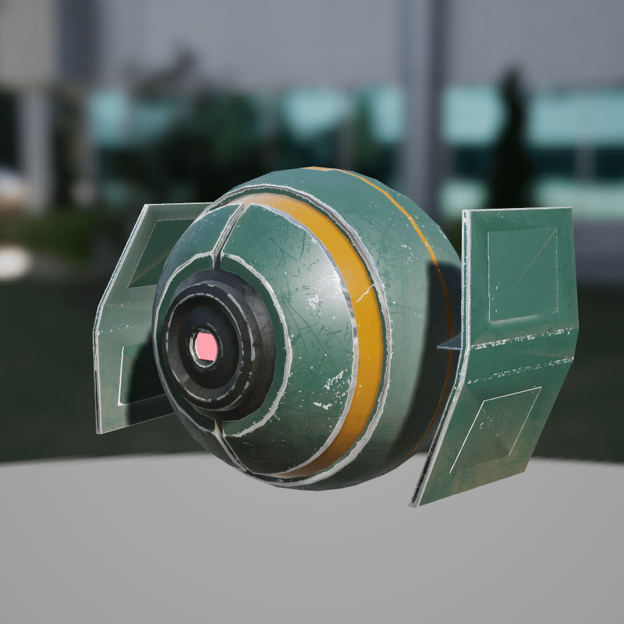There are two drone material variations for the drone body. The main one is “MI_DirtyDroneGreen” which is used by default. There is also an alternate variation in red “MI_DirtyDroneRed”.