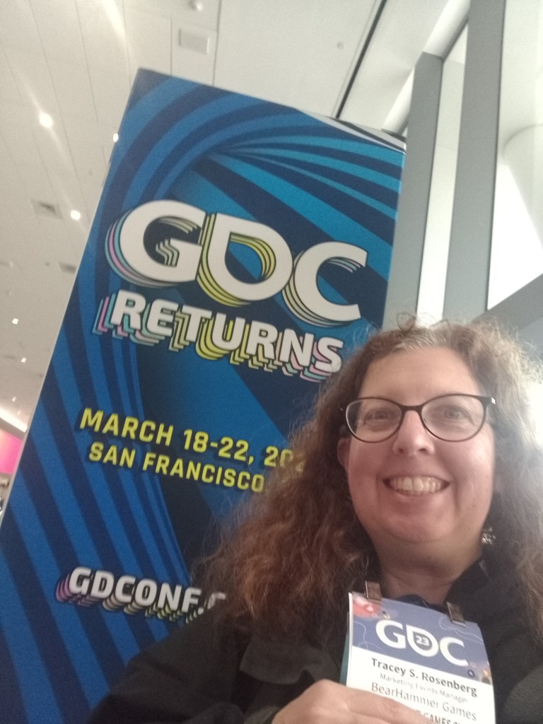 Creative Scotland gave our indie studio (Bearhammer Games) a Go See Share grant to send two people to the Game Developers Conference in San Francisco in March 2023. We’re incredibly grateful! I’m Tracey S. Rosenberg, and I came on board at BearHammer to work on administration and grant applications. The other BearHammer attendee was Rachel Cassandro, a junior developer who focuses on level design, and you can read what she learned about the vistas in God of War Ragnarök.